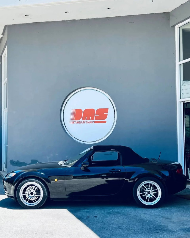 Mazda MX-5 NC equipped with a 2.5L Duratec engine, DMS Stage 1.5 camshafts, Ramair intake and 63.5mm performance exhaust system. Custom tuned and designed by DMS Tuned, engineered in collaboration with Lefkaditis Motorsport.
